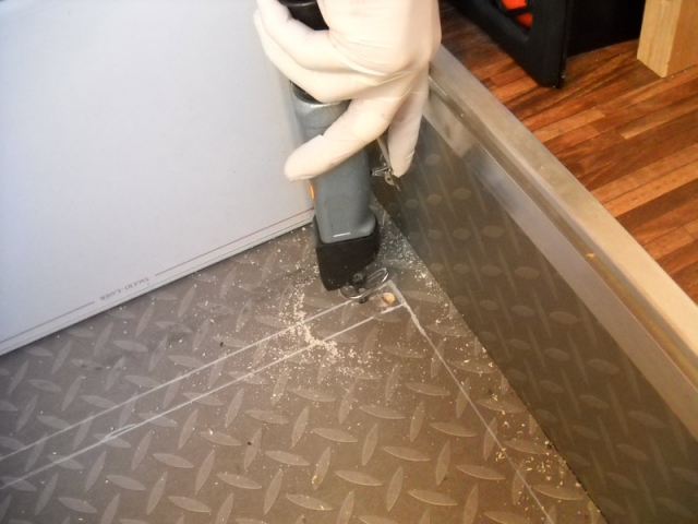 Κόβει, κατ' αρχάς, ένα τμήμα του ξύλινου πατώματος, στο ένα άκρο του γκαράζ, ίσο με τις διαστάσεις της γεννήτριας που έχει αγοράσει ο πελάτης.
