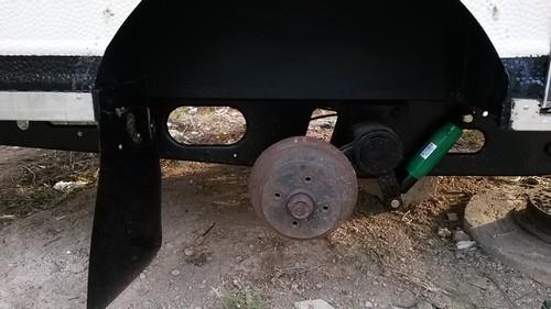 Μόλις βγήκαν τα 2 αμορτισέρ (κάποτε ήταν αμορτισέρ), το αμορτισέρ του φρένου (χούφτας) και τα φερμουίτ των φρένων. To σασί είναι της AL-KO. Το ταμπελάκι λέει 560κιλά και 700κιλά γεμάτο. Επιλέχθηκαν τα πράσινα αμορτισέρ της AL-KO.