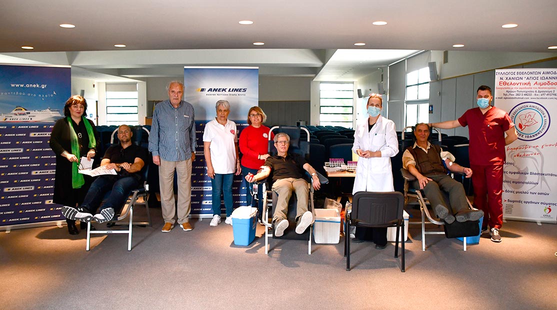 Η ΑΝΕΚ LINES, λειτουργώντας με γνώμονα την υπευθυνότητα και την αλληλεγγύη απέναντι στο κοινωνικό σύνολο, πραγματοποίησε την Τρίτη 16 Μαΐου, με επιτυχία, την 20η Εθελοντική Αιμοδοσία, στα Κεντρικά Γραφεία της εταιρείας στα Χανιά, σε συνεργασία με το Σύλλογο Εθελοντών Αιμοδοτών του Ν. Χανίων «Ο Άγ.Ιωάννης» και το Γενικό Νοσοκομείο Χανίων.