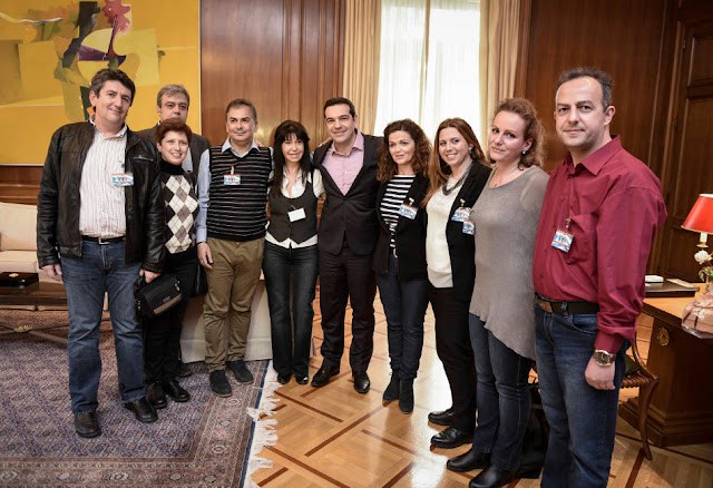 [αντιπροσωπεία των επιτυχόντων του διαγωνισμού του ΑΣΕΠ του 1998 χαμογελούν πανευτυχείς μαζί με τον πρωθυπουργό άμα τη ανακοινώσει ότι ο επιμορφωτής μη προσοντούχων δημοσίων υπαλλήλων υπουργός κ. Βερναρδάκης [brand name SYRIZA] τους διορίζει στο Δημόσιο. Ο αγώνας τώρα δικαιώθηκε]
