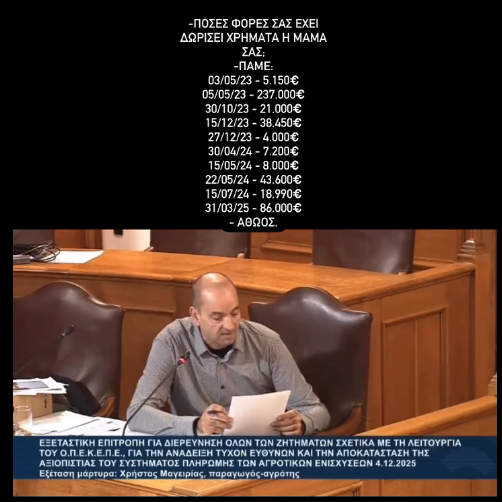 Σε επίρρωση της πληροφορίας περί επιδότησης του πρωθυπουργού ως αγρότη, παραπέμπω στο βίντεο που αναρτήθηκε στο κανάλι μου στο YouTube τον περασμένο Αύγουστο (2025) με τίτλο : "Σκαλίζω τον βόθρο του ΟΠΕΚΕΠΕ στο ησυχαστήριο της Κάσου!".